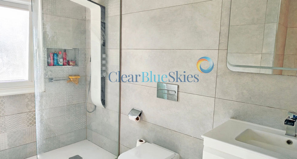 Upstairs there are three bedrooms. The master bedroom has a recently refurbished en-suite shower room, fitted wardrobes and patio doors to the upper balcony with mountain and pool views. A further two bedrooms and a family bathroom can also be found on this floor with an internal staircase leading to the 46m² private roof terrace and storage area. Additionally there are two private parking spaces to the side of the house.